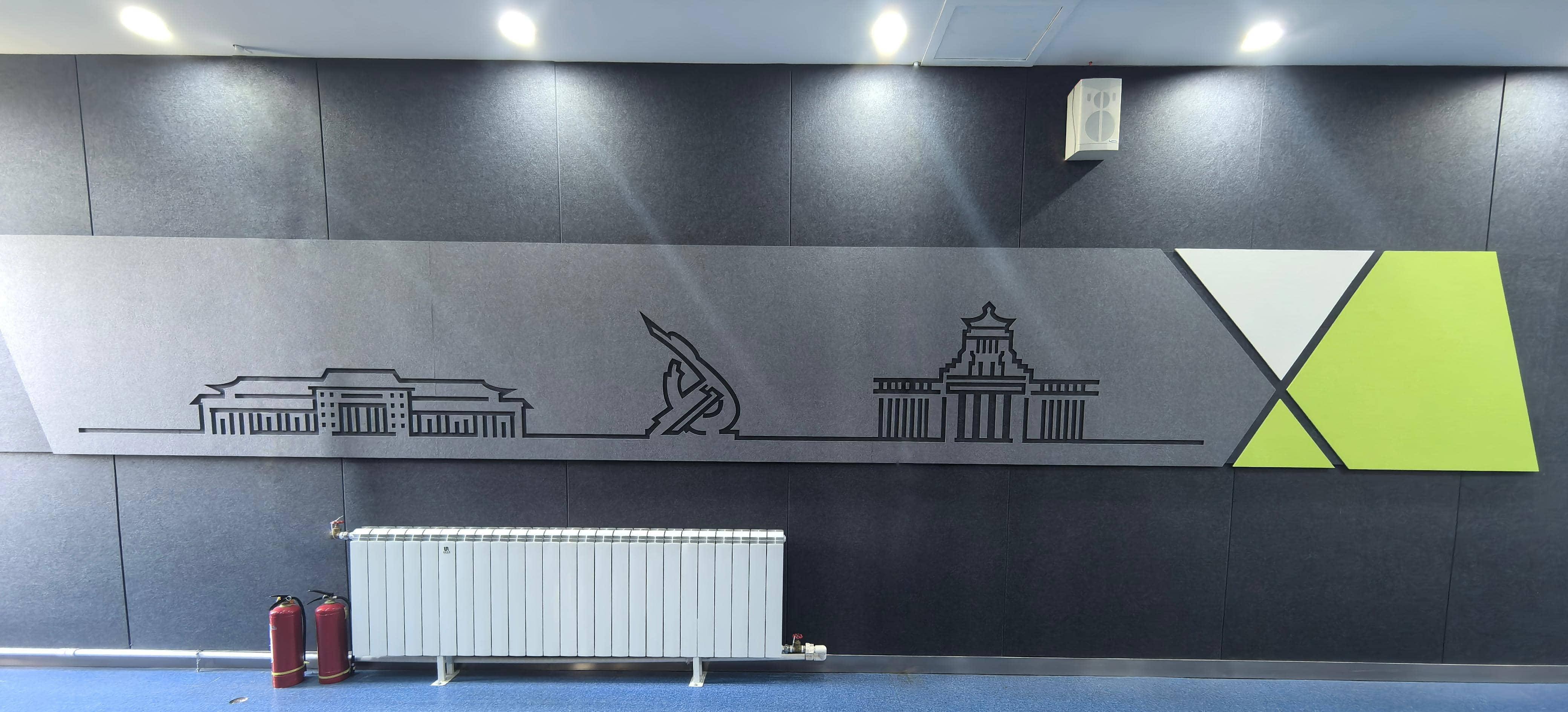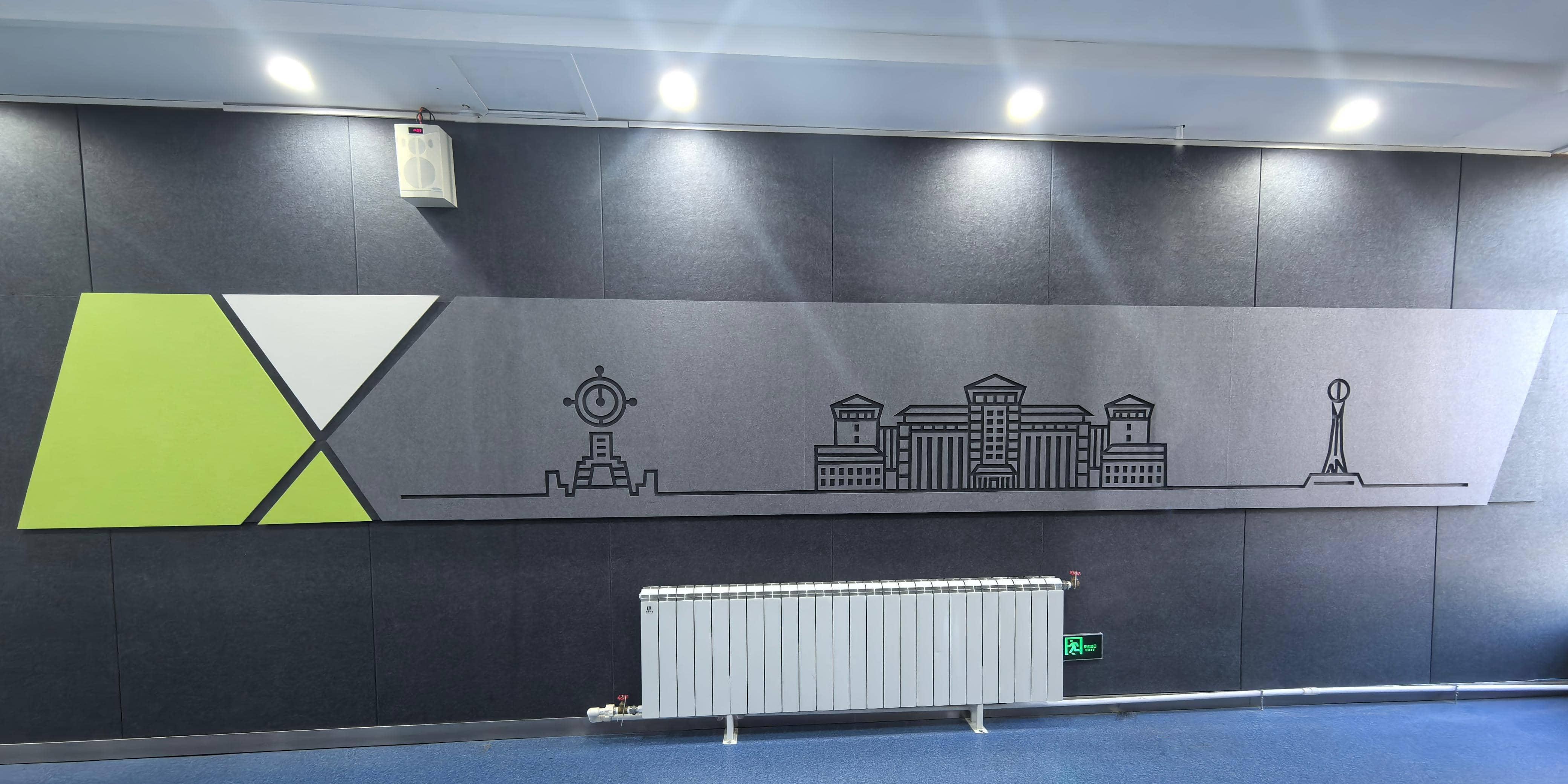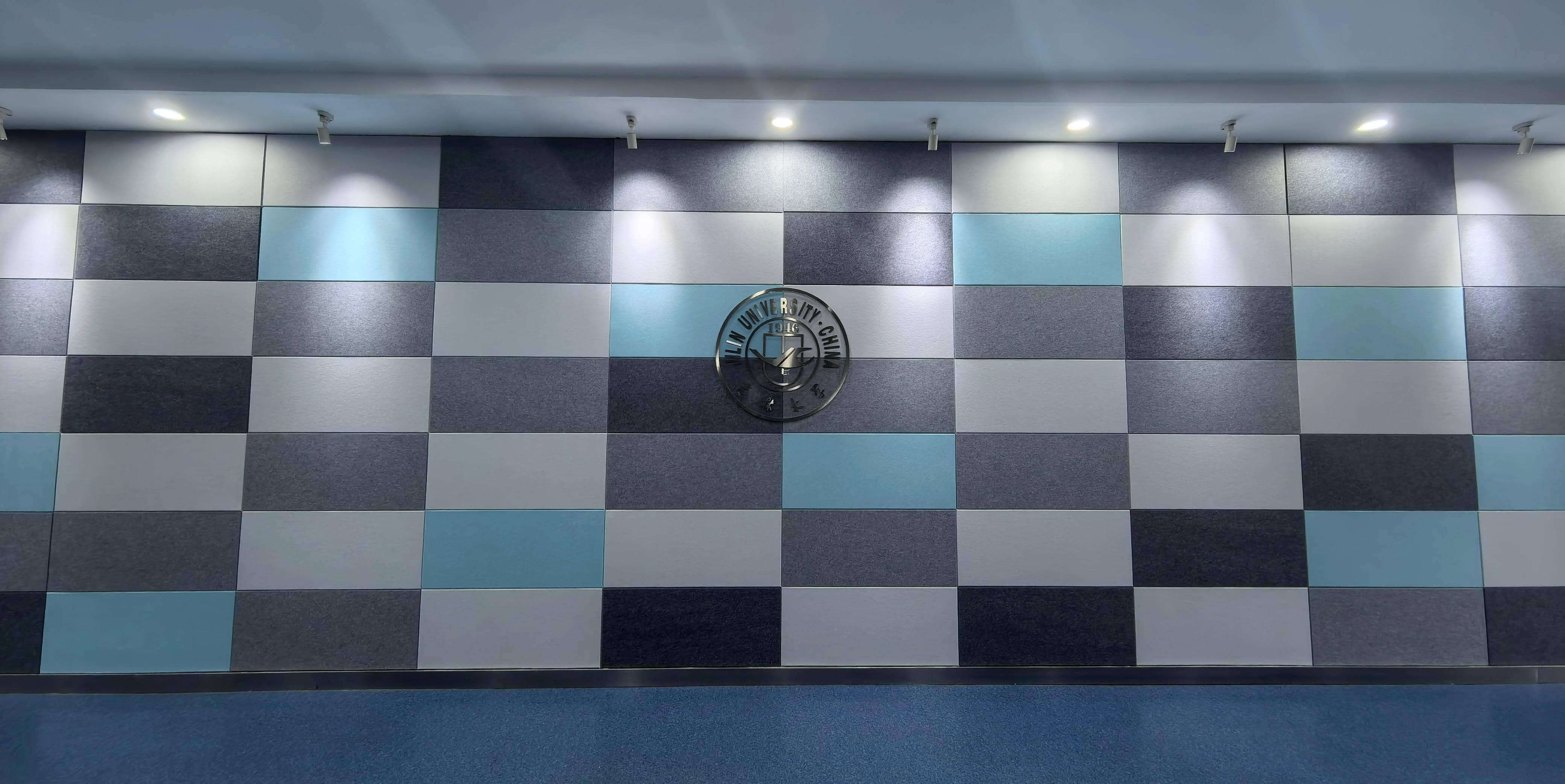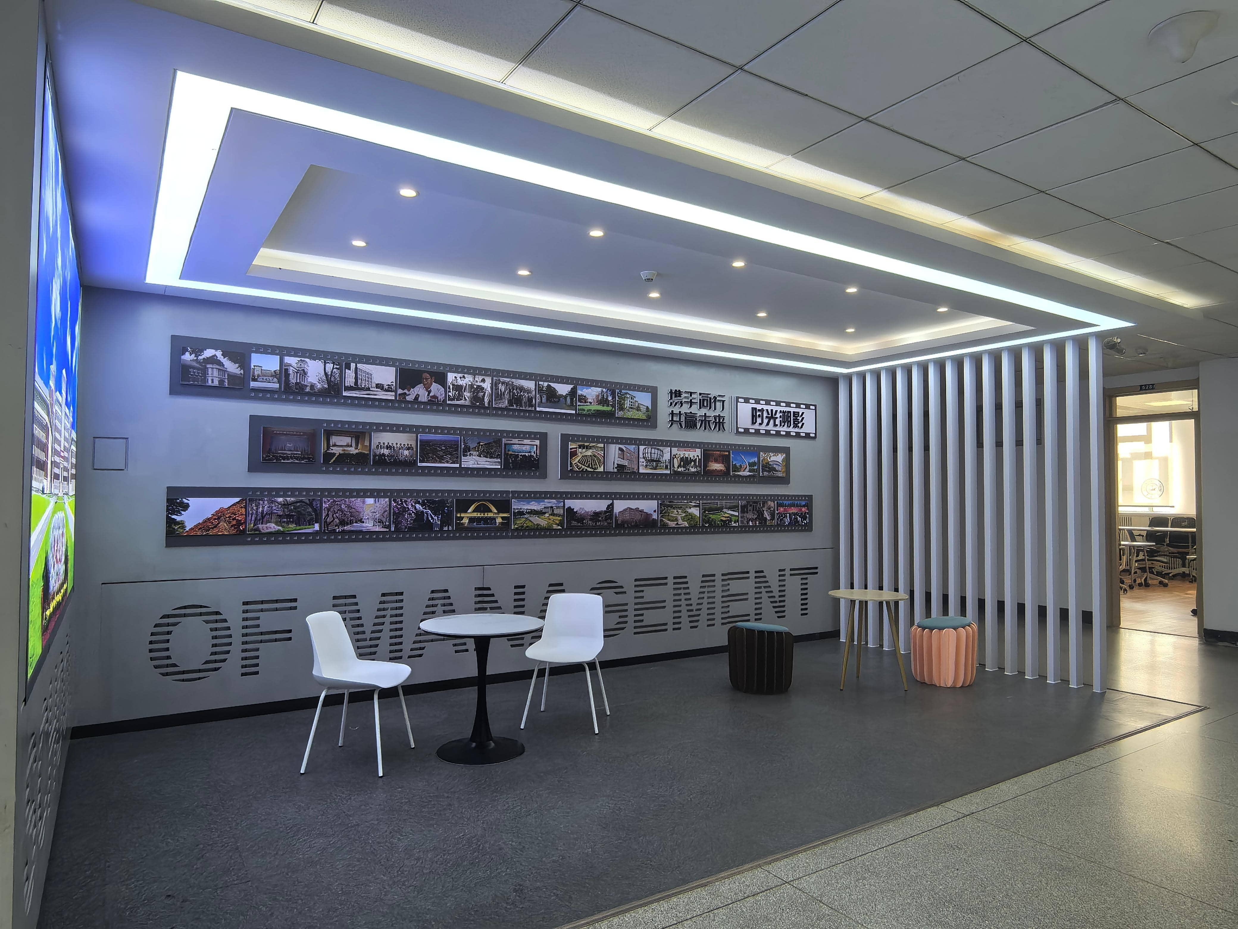 在本科生院及东区办公室的指导下,接到南岭校区逸夫教学楼走廊改造专项工作,设计系迅速组建由师生组成的实践教学团队,高效完成此次改造任务。经过前期多次现场勘察、开会讨论设计方案后,在72小时内完成包括:电梯间形象墙、走廊文化角、会议厅走廊空间三处改造项目的视觉设计方案。通过采用定制环保材料进行现场拼装的方式,既能保证艺术品质又能缩短工期。自9月19日起,实践教学团队与施工方开启“白+黑”工作模式。连续6昼夜完成近300平米墙面的艺术处理和多组装饰灯箱的安装调试。9月25日,南岭校区逸夫教学楼走廊文化建设改造项目全面竣工,焕然一新的走廊空间成为校园美育教学实践与学科精神传承的创新载体。