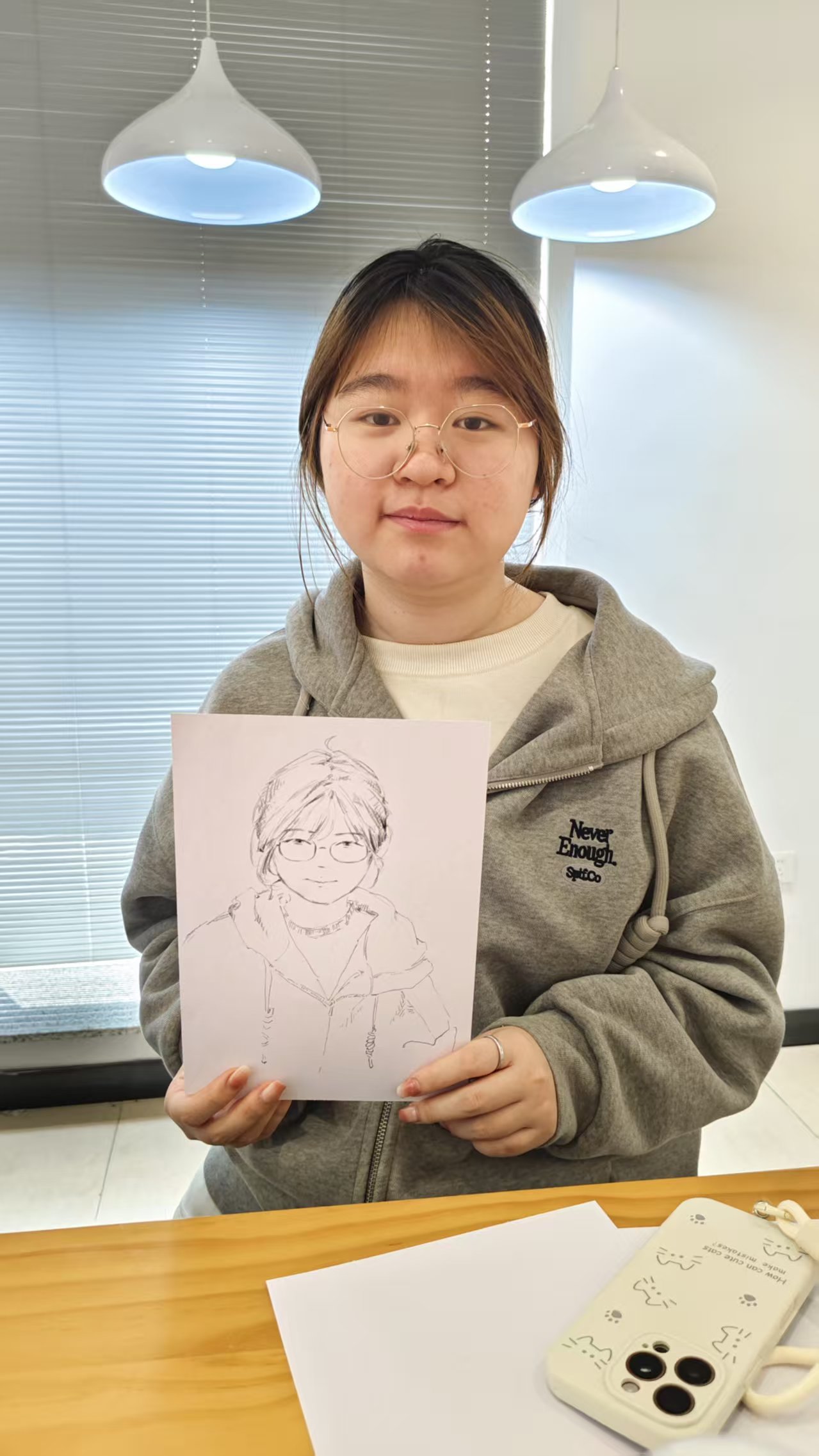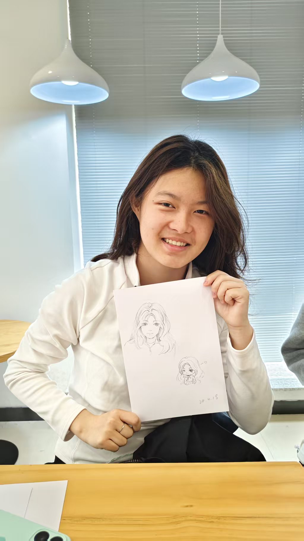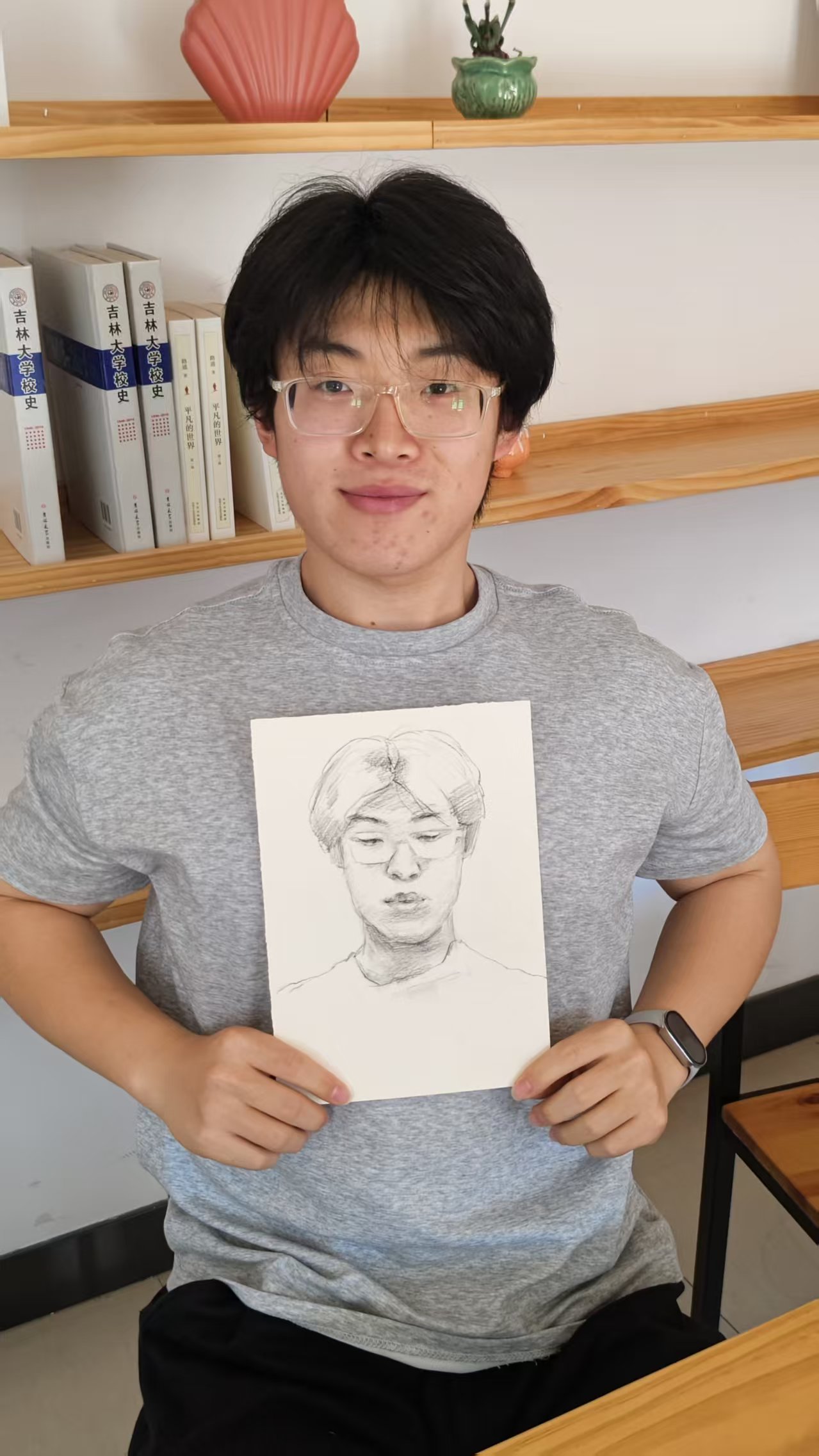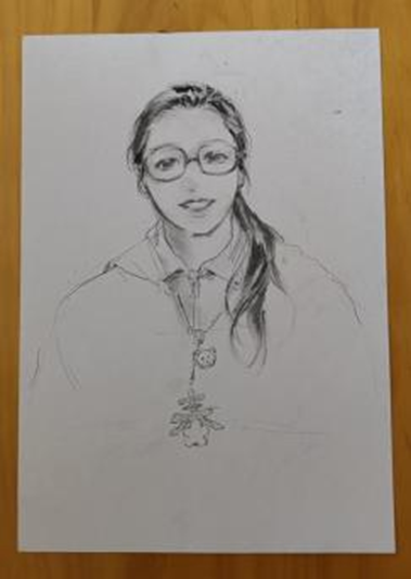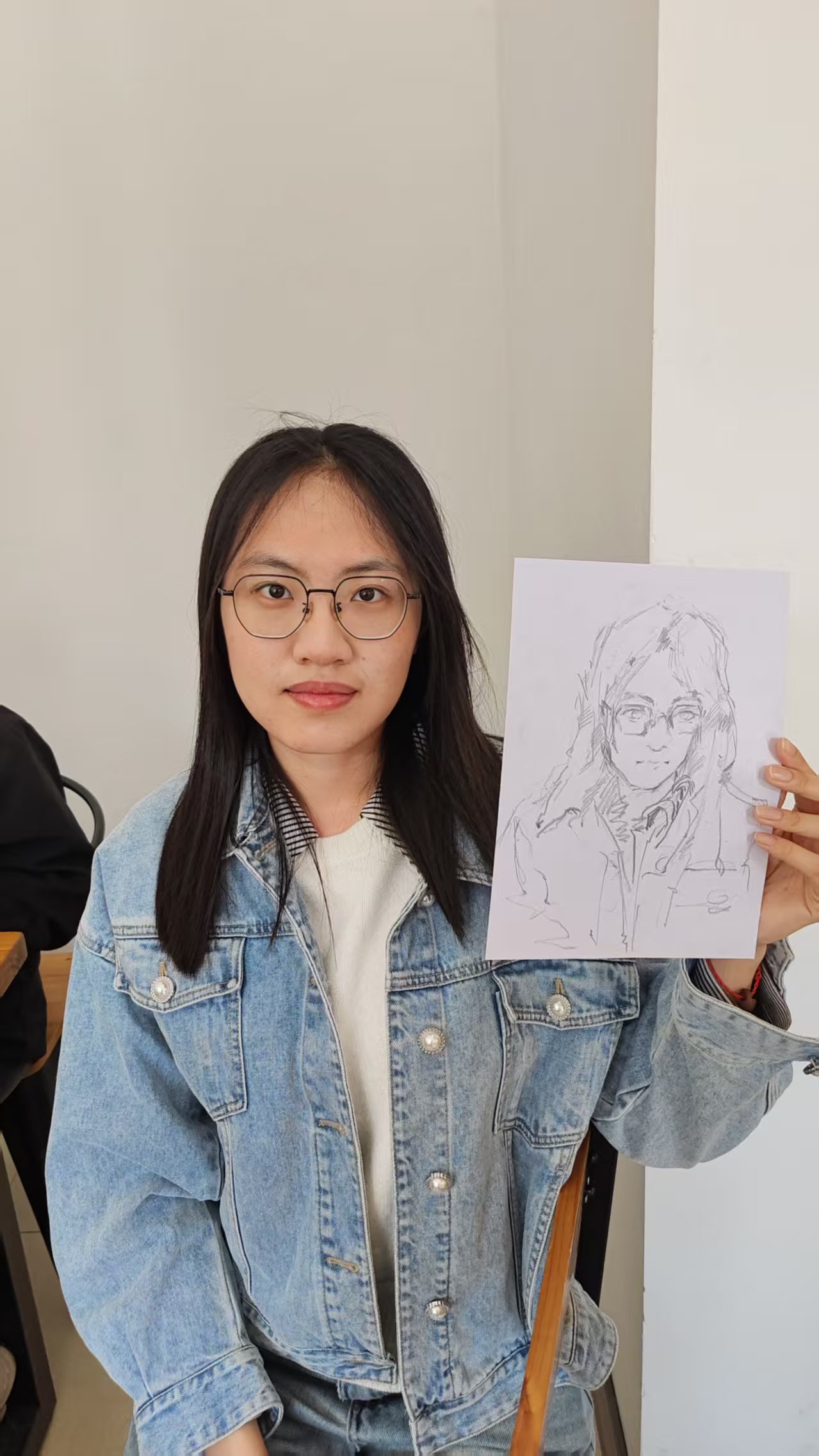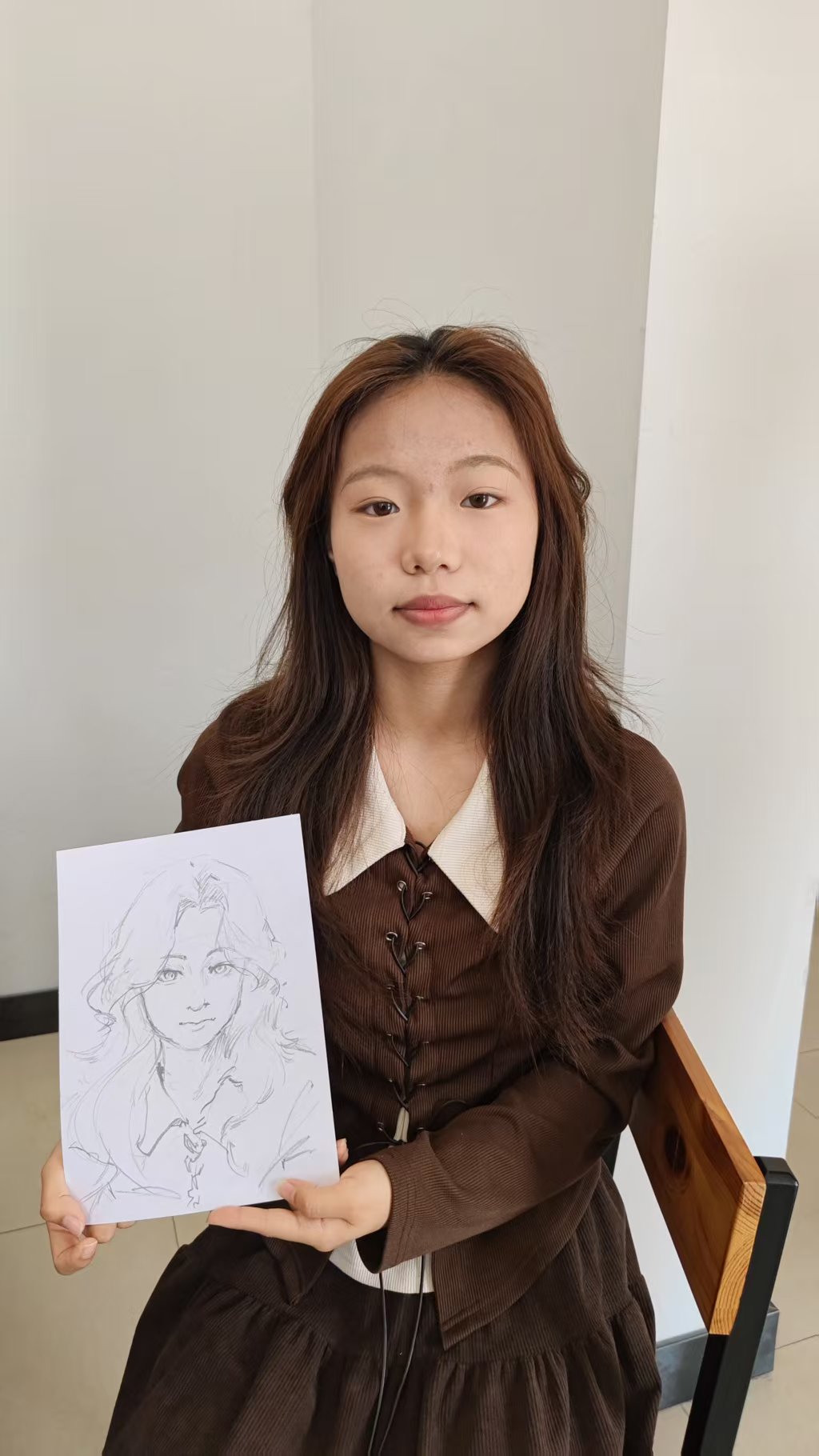 肖像画完成后, 同学们陆续收到了自己的专属作品 。大家欣喜地手持画作,纷纷合影留念,用镜头定格下这份独特的艺术记忆。现场气氛温馨而热烈,每一幅肖像都成为青春时光的生动注脚。