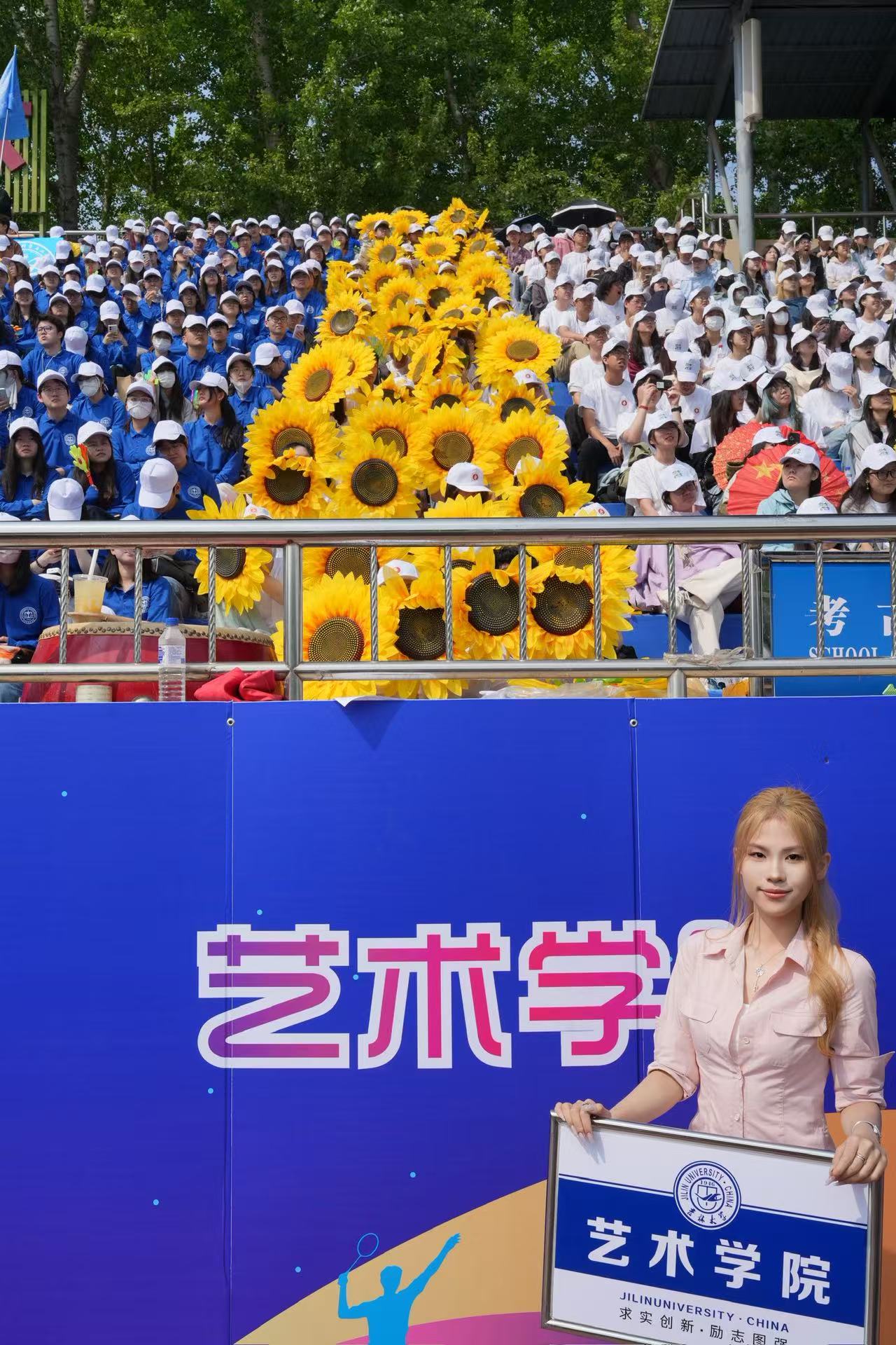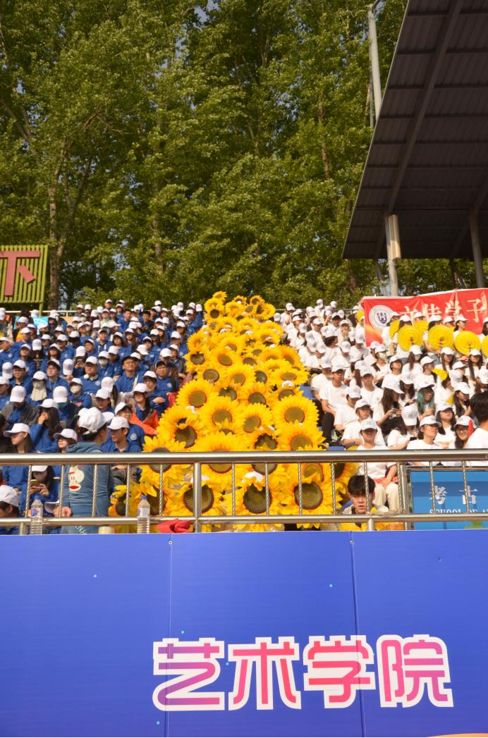 观众方阵在绽放。向日葵昂起笑脸,宛如被画笔蘸满鎏金的调色盘,将整个赛场染成流动的星河。似海浪托举太阳,又似千万支燃烧的火炬,在蓝天下续写青春的诗行。