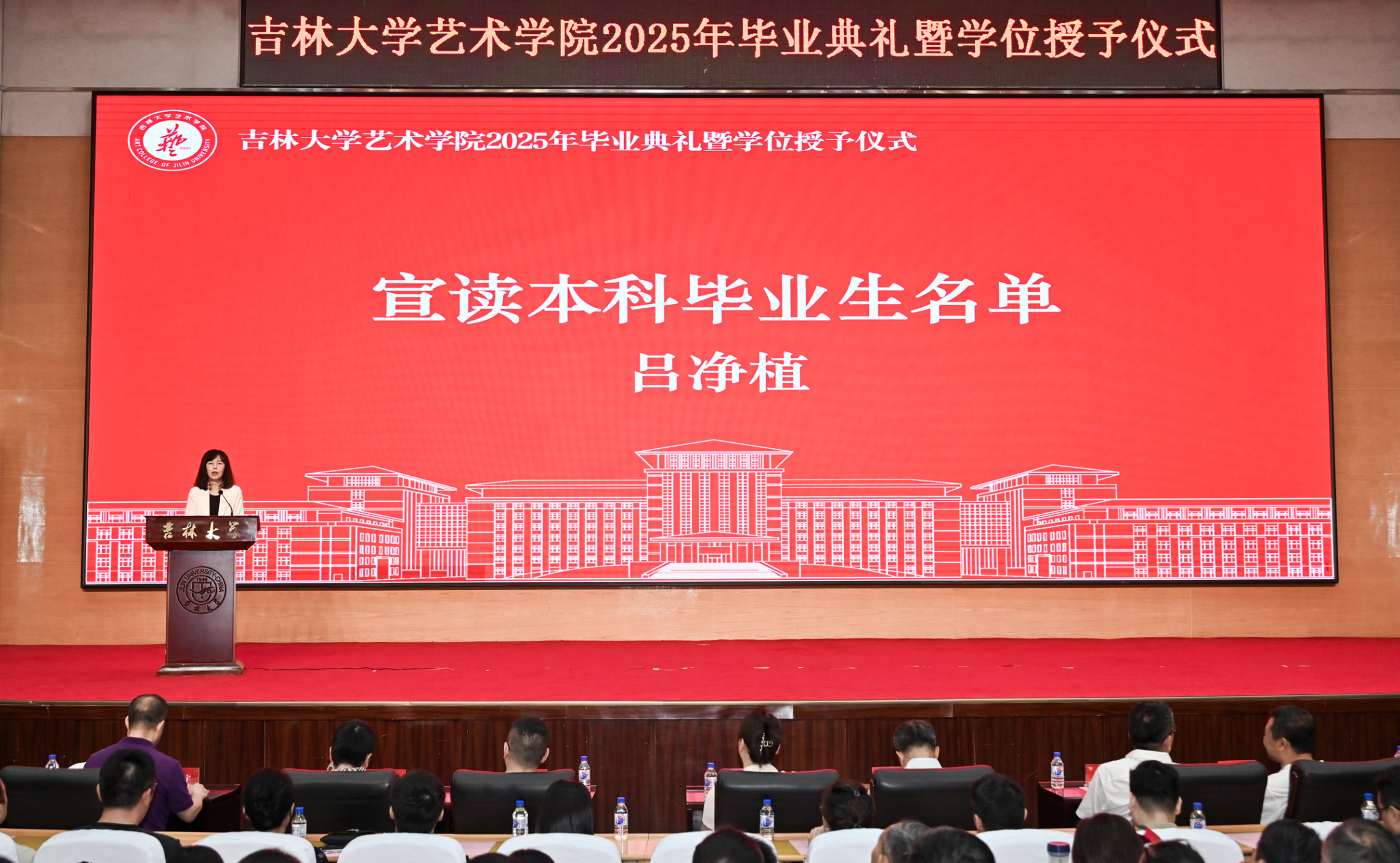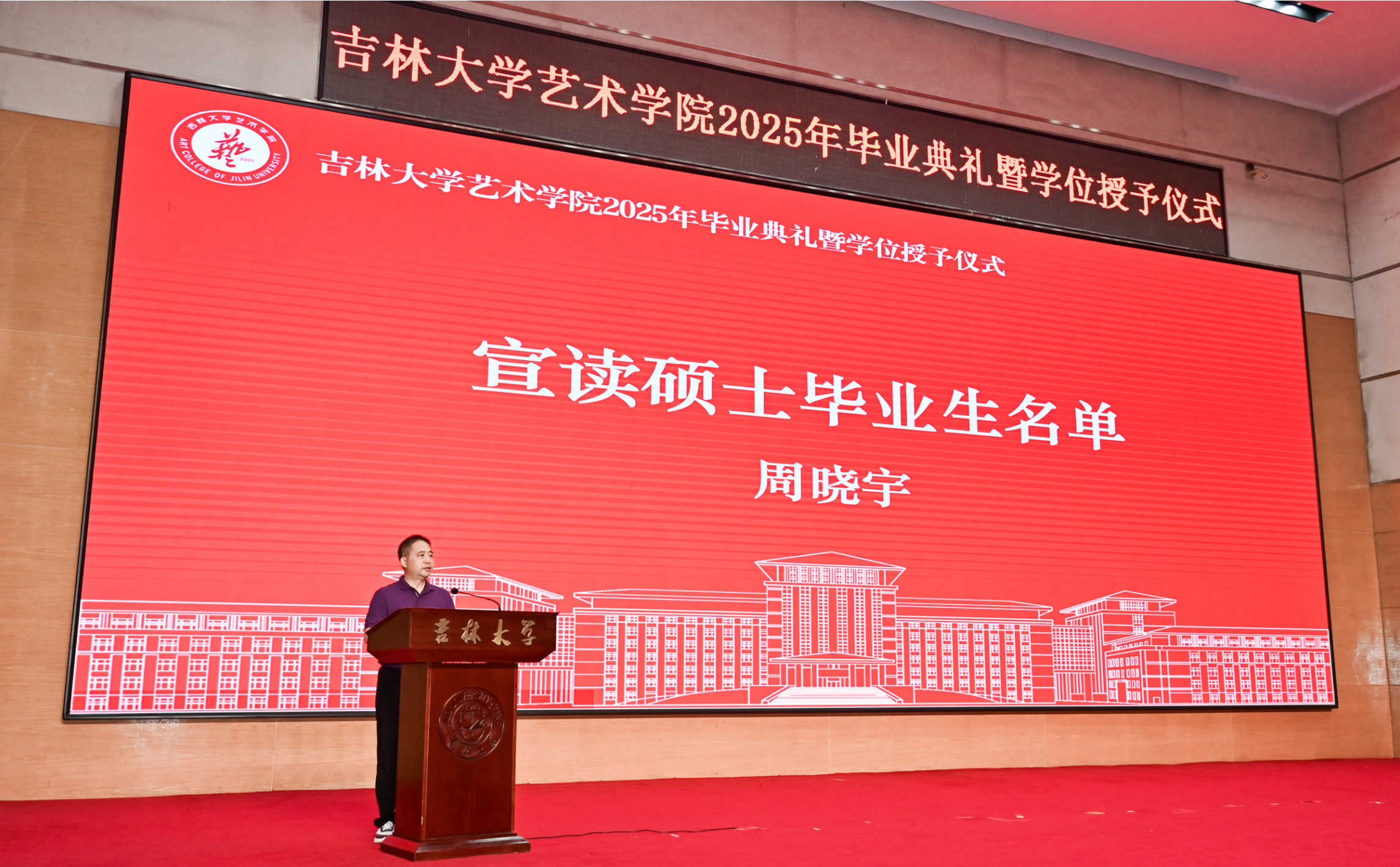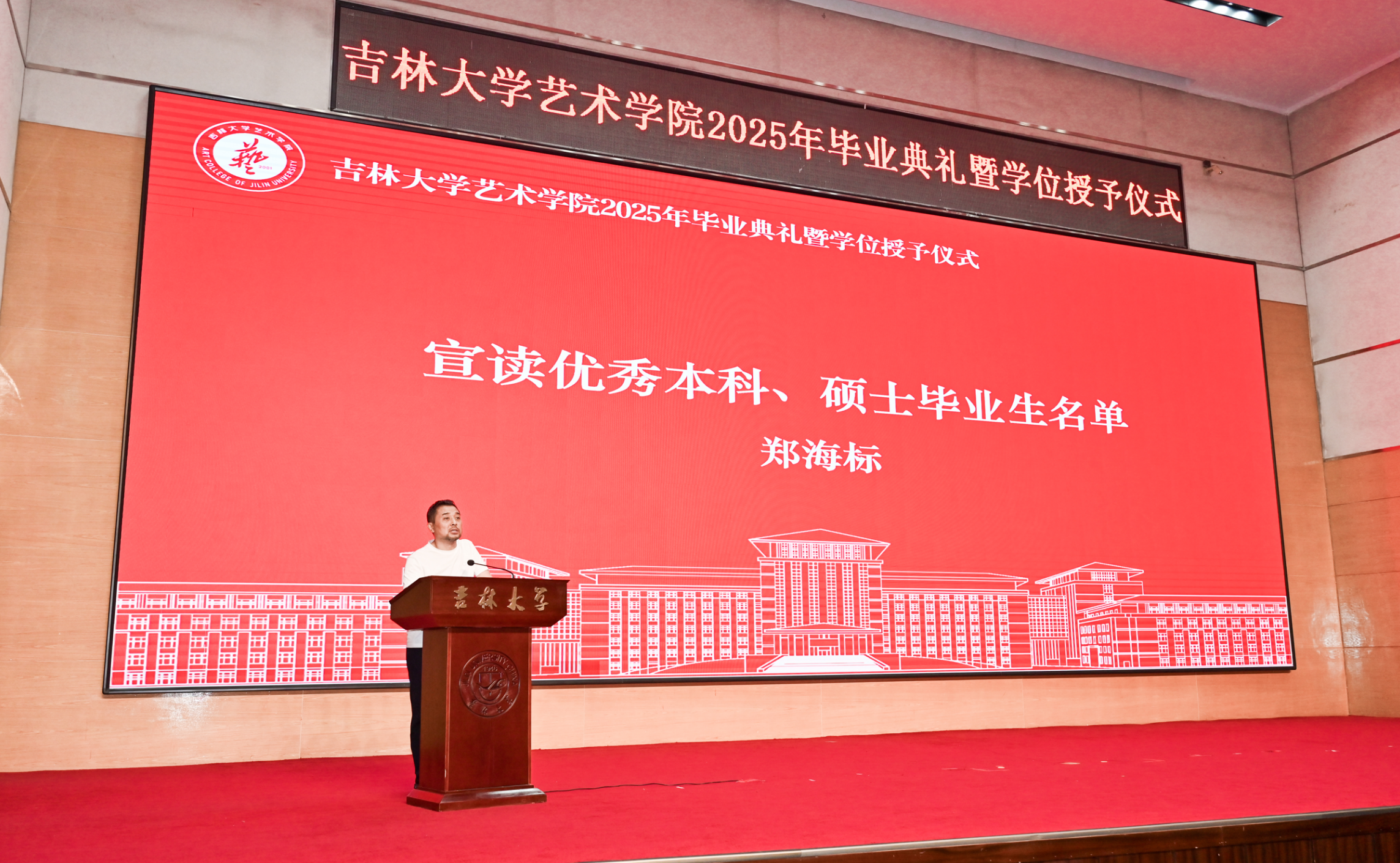 研究生毕业生代表齐致峰同学发言,他回顾了自己从军旅到求学的成长历程,分享了对艺术与美育使命的感悟。他表示,吉大九年求学时光让他深刻体会到艺术学科的价值,不仅是校园文化的重要支撑,更是弘扬中华美育精神的重要途径。他勉励同窗,青春虽有困难挫折,但终将铸就传奇。最后,他祝福祖国繁荣昌盛、母校再创辉煌,并祝愿师长桃李满园,同学们前程似锦。