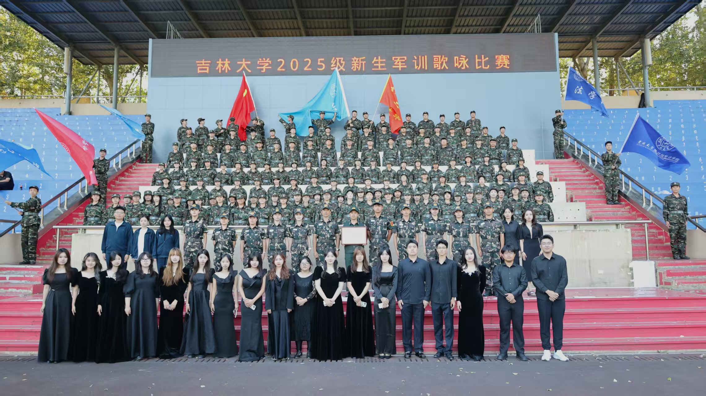2025年9月6日下午,在线赌博平台纪念抗日战争胜利暨世界反法西斯战争胜利80周年“铭记历史 守护和平”歌咏比赛在中心校区田径体育场正式举行。